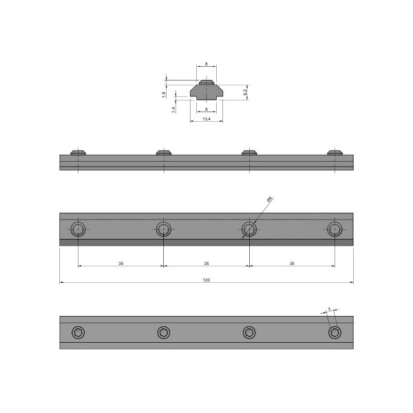 3 Series Linear Connector Set is a simple, effective joining solution for connecting two profiles in-line. The zinc-plated bar slides securely into the T-slot of each profile, ensuring alignment and strength without the need for machining.
