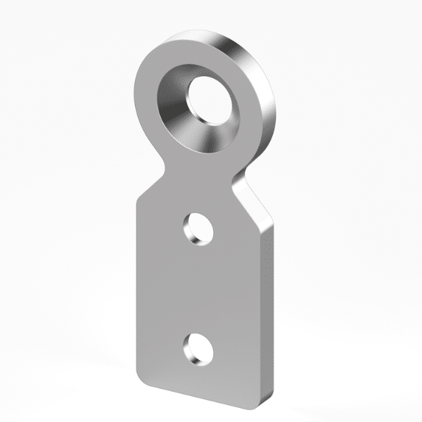 4 Series T-Connector Plate D28 is a zinc plated steel connector used to join Ø 28 mm tubular frame profiles to SlotPro 4 Series aluminium extrusions at a 90 degree angle. The plate fastens to the core hole or threaded sleeve (D28 M8) of the round tube and attaches externally to the T slot profile using standard M8 fixings.
